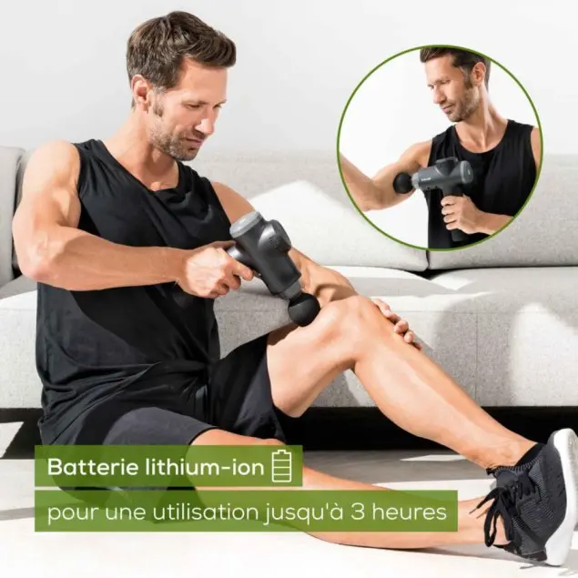 Après une longue journée de travail ou un entraînement éprouvant, le corps et les muscles se sentent souvent fatigués et sollicités. Avec le Massage Gun de Beurer, tu peux détendre tes muscles et profiter de massages puissants mais bienfaisants des points gâchettes et traiter de manière ciblée certaines parties de tes muscles.