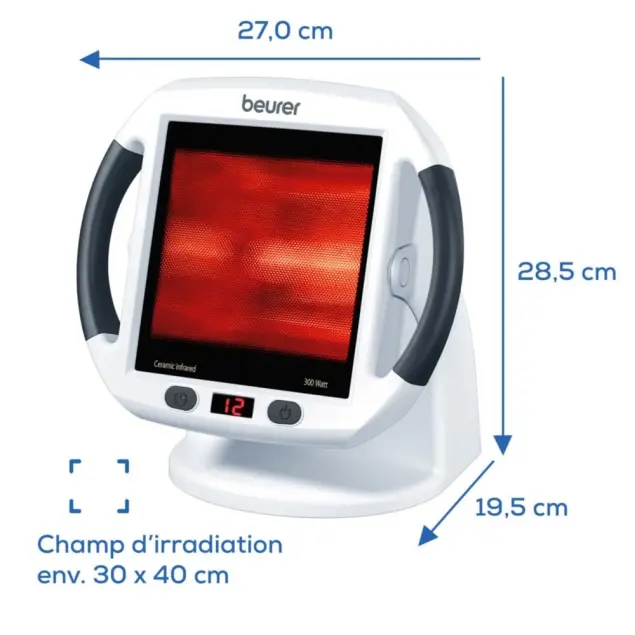La lampe à infrarouge IL 50 de Beurer n’est pas seulement sûre, mais aussi polyvalente. Avec une minuterie allant jusqu’à 15 minutes, qui peut être réglée de manière flexible, la lampe s’éteint automatiquement après l’expiration du temps réglé. Cela garantit une utilisation en toute sécurité. De plus, la lampe à infrarouge est également adaptée aux soins du visage et de beauté, en particulier pour les peaux impures. Grâce au filtre en verre céramique avec une protection UV à 100% et à la certification en tant que produit médical, elle offre une qualité testée pour une utilisation quotidienne.