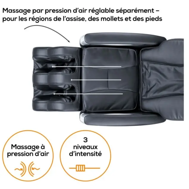 Massage par air comprimé réglable séparément pour l’assise, les mollets et les pieds.