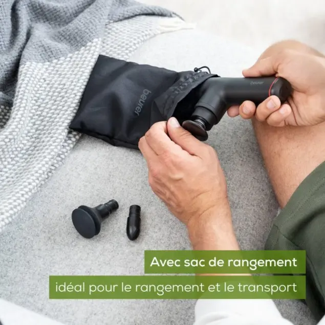 pistolet de massage musculaire, massage profond, appareil de massage Beurer, MG 79, massage portatif, massage cou et pieds, massage détente, massage récupération sportive