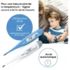 Ce thermomètre électronique dispose d’une alarme sonore de fièvre dès 37,8 °C pour une surveillance efficace de la santé.